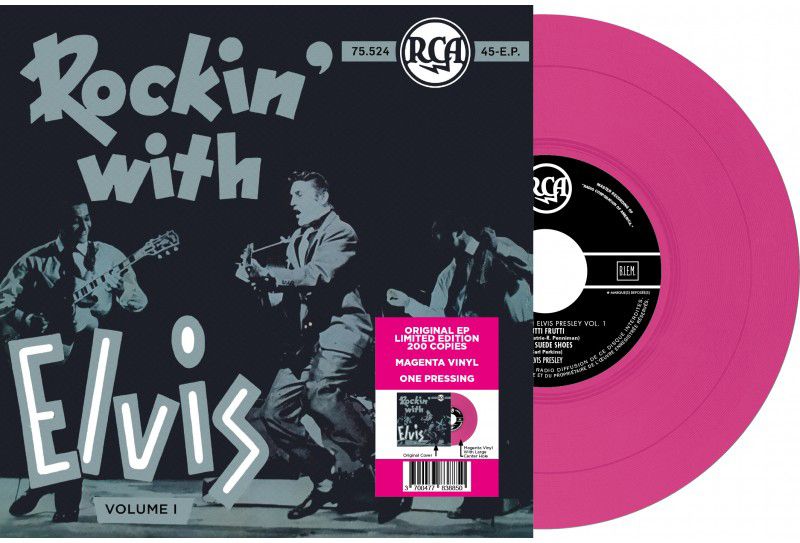 La publicité indiquait : Le 45 tours belge « Rockin' With Elvis » (RCA 75.524), sorti en 1956, est un objet rare et très recherché par les collectionneurs. Sa pochette couleur représente Elvis entouré de ses camarades : Scotty Moore, Bill Black et D.J. Fontana.
