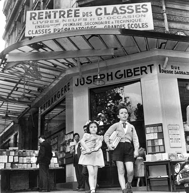 Rentrée des classes chez Joseph Gibert, boulevard Saint-Michel. 1958.