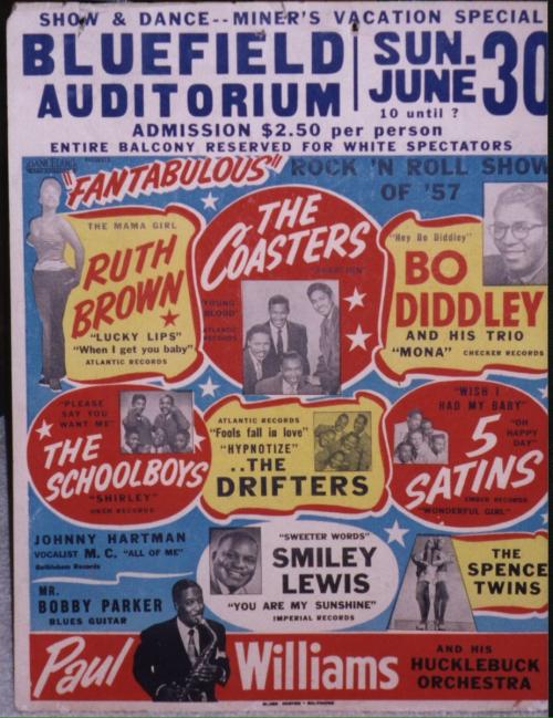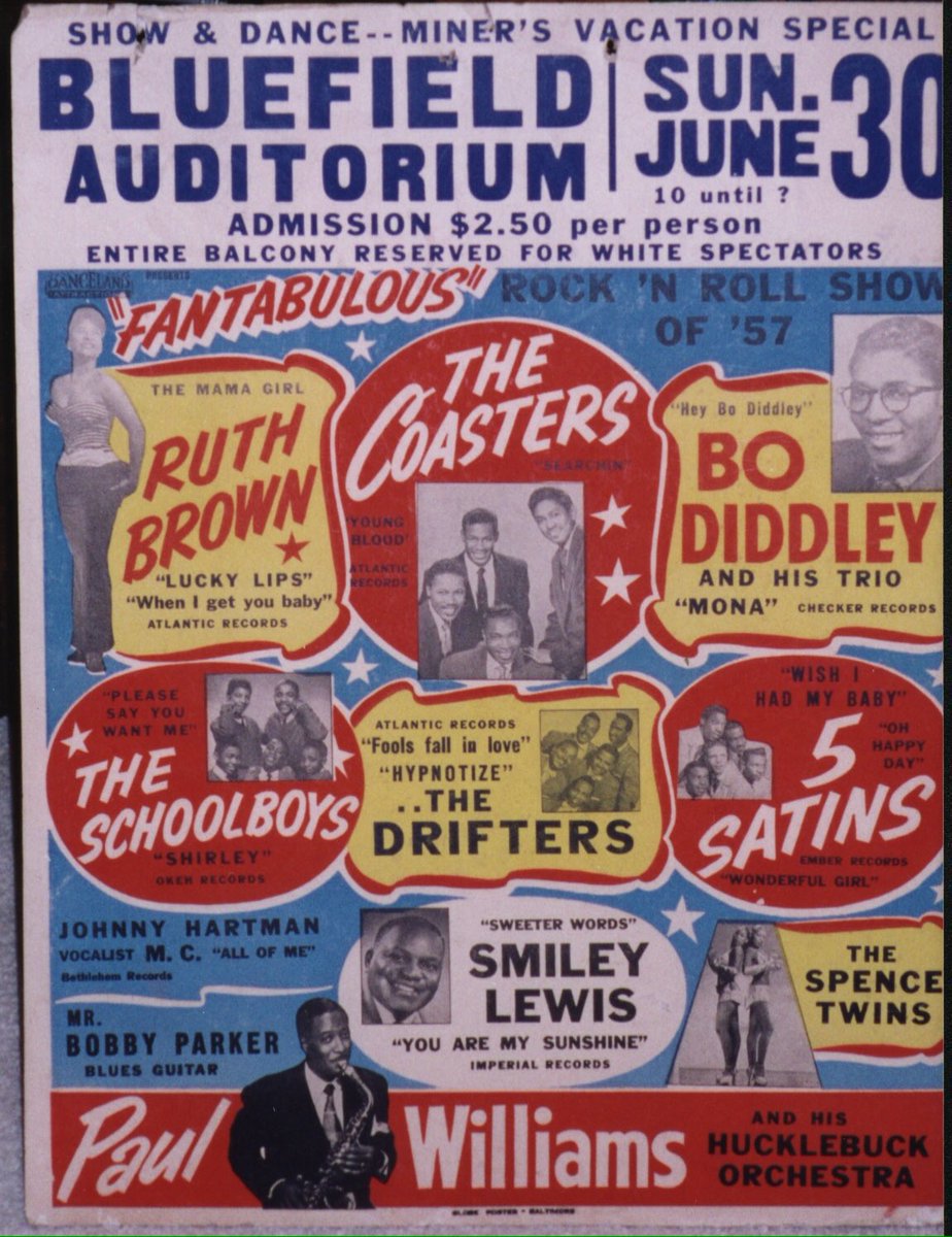 30 juin 1957 au Bluefield Auditorium, West Virginia avec Ruth Brown, The Coaster, Bo Didley, The Schoolboys, The Drifters & ............................