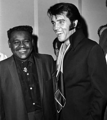 Fats Domino et Elvis, admiration mutuelle : dans le nouveau drame "ELVIS" de Baz Luhrmann - dans la scène de la conférence de presse de Las Vegas en 1969, Elvis dit : "Je ne suis pas le roi du rock'n'roll... voici Fats Domino, c'est le vrai King du Rock'n'roll".