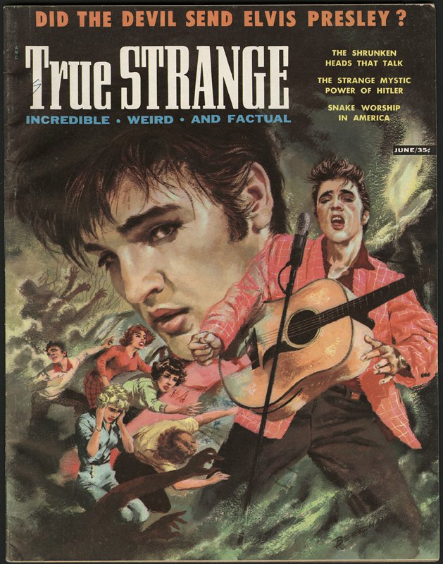 Did the Devil Send Elvis Presley? Les dessins d'Elvis réalisés par Thomas Beecham pour le magazine True Strange (juin 1957) habitent et expriment parfaitement le titre de l'article.