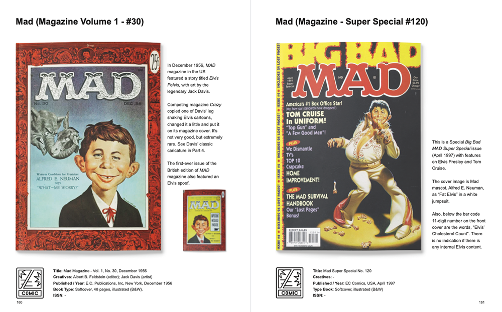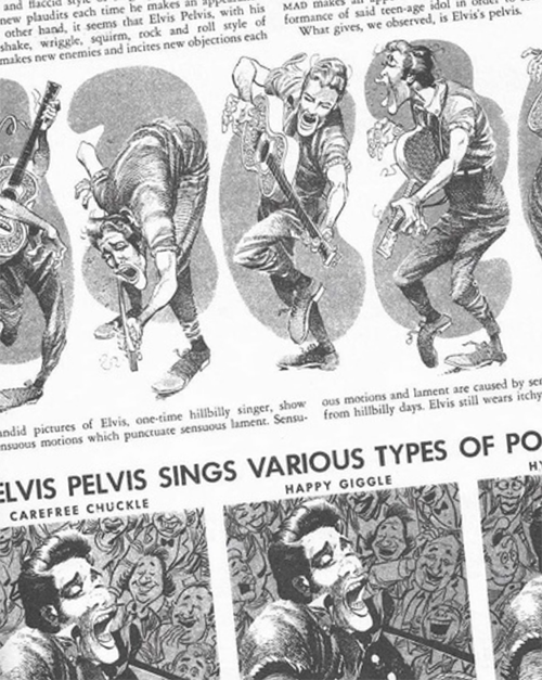 Alors qu'Al Hirschfeld est considéré comme ayant dessiné la première caricature d'Elvis dans le magazine Collier's (juillet 1956), c'est la caricature de Jack Davis dans le numéro de décembre 1956 de MAD qui a attiré beaucoup de publicité à l'époque.