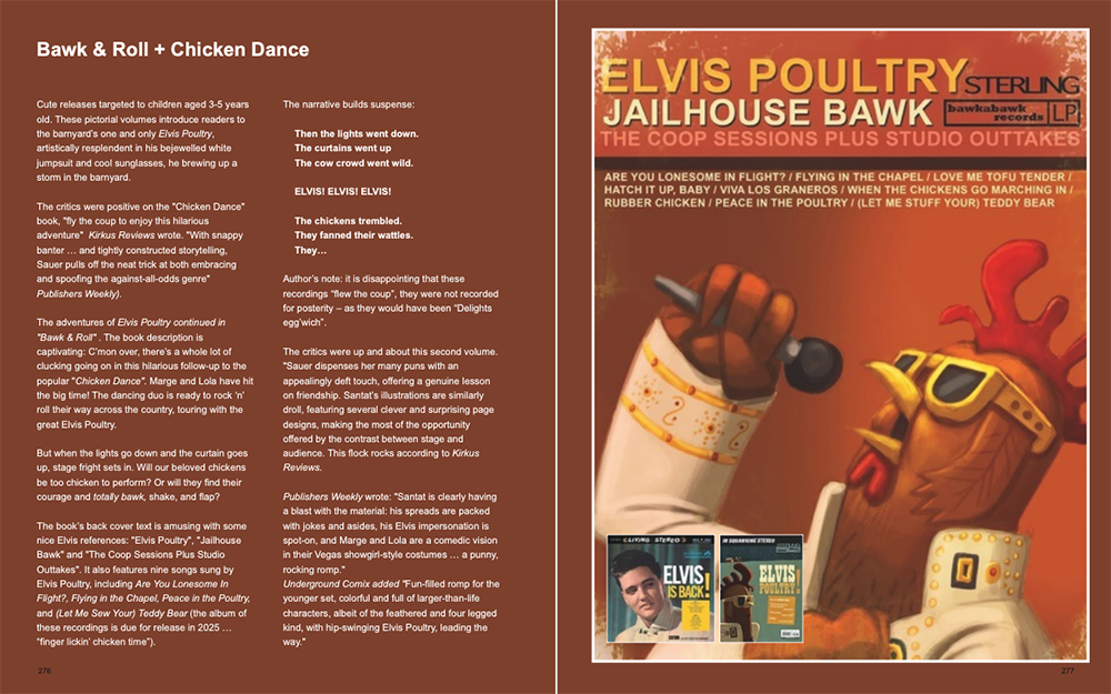 Bawk & Roll et Chicken Dance - le personnage d'Elvis Poultry et ses exploits de basse-cour sont merveilleusement mis en scène dans ces livres colorés et très amusants. Ils plairont aux enfants comme aux adultes.