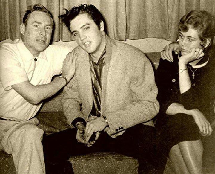 Avec Dewey Phillips, Bonnie Underwood, Charles Underwood (mari et femme) . Memphis. Sam qui a fait la rencontre du couple avec ELVIS .